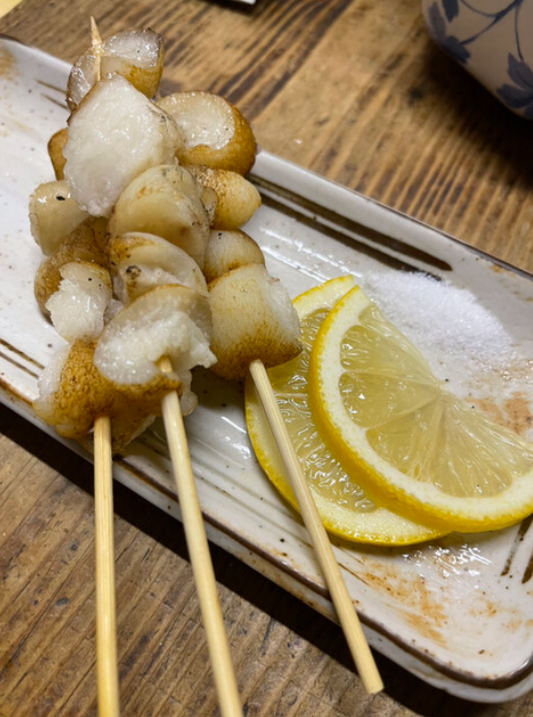 豚足を油抜いて串焼き