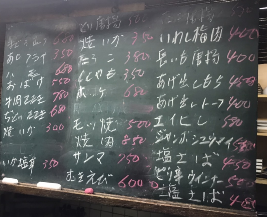 夜のメニュー